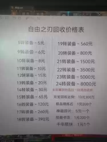 传奇装备价格回收表,传奇装备回收能赚钱吗