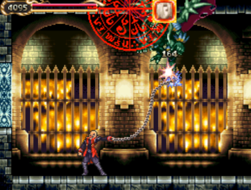历代《恶魔城》的鞭子都可以按住不放旋转。《迷宫画廊》需要获取魔导器之后,才会出现一些特殊的效果。