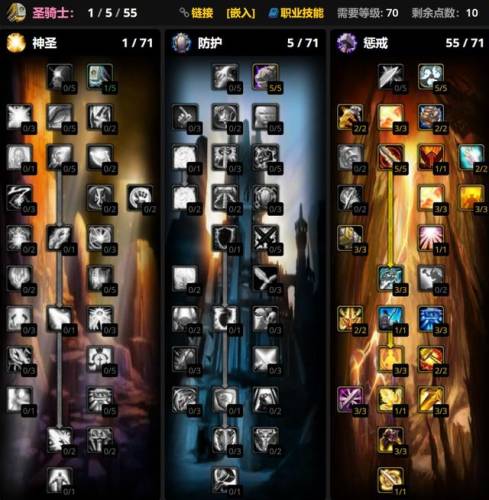 惩戒骑天赋推荐下面是一个团本输出通用型的惩戒骑天赋加点,可微调的内容非常少了。