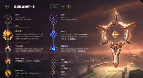 阿木木的成长属性很强,大招的控制能力很适合打后期,风暴聚集更有利于阿木木的后期战斗。这样我们就可以出更少的AP装得到更多的AP加成,配合阿木木被动法强转化成真实伤害十分的酸爽。剩余的装备补出肉装,让阿木木真的成为一个重装的核弹选手。