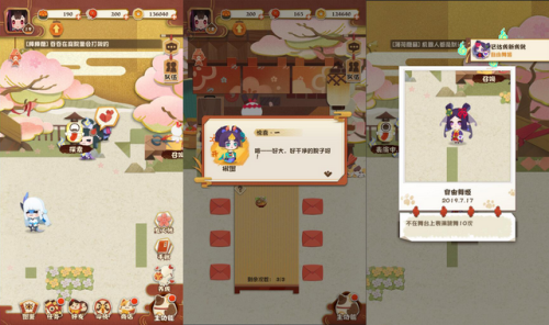 不过个人感觉妖怪屋的弹珠买点其实不在于本身对于关卡的攻略,而是本身的养成内容,在这里你可以玩到牧场物语,宝可梦,煮糊了等等游戏的缩影版。开个玩笑,其实结合众家之长的妖怪屋养成系统,确实让人在弹珠攻略后有一种放松感,式神通过箱庭的摆设,花园布置,料理的置放,还有本身在箱庭中游走的其他式神互动,都会产生不同的反应。这里还会根据相关的好恶产生式神的心情变化,在积累一定心情值后式神的羁绊会增加,进而提升其基本属性。在手机放置的时候,多看看式神之间的互动,还是非常让人赏心悦目的。如果你是阴阳师的忠实玩家,并且对某些式神情有独钟的话,那么这些突如其来的对话以及动作,肯定会让你会心一笑。